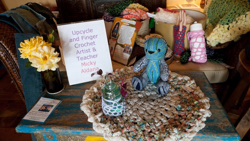 May 6th, join us at Averyboo Arts in Bixby Knolls for First Fridays. Avery Boo will be showcasing Aldana Mica's recycled wall art including dolls, flowers and plants .... We will also be doing finger crochet demonstrations for those who want to try it out.